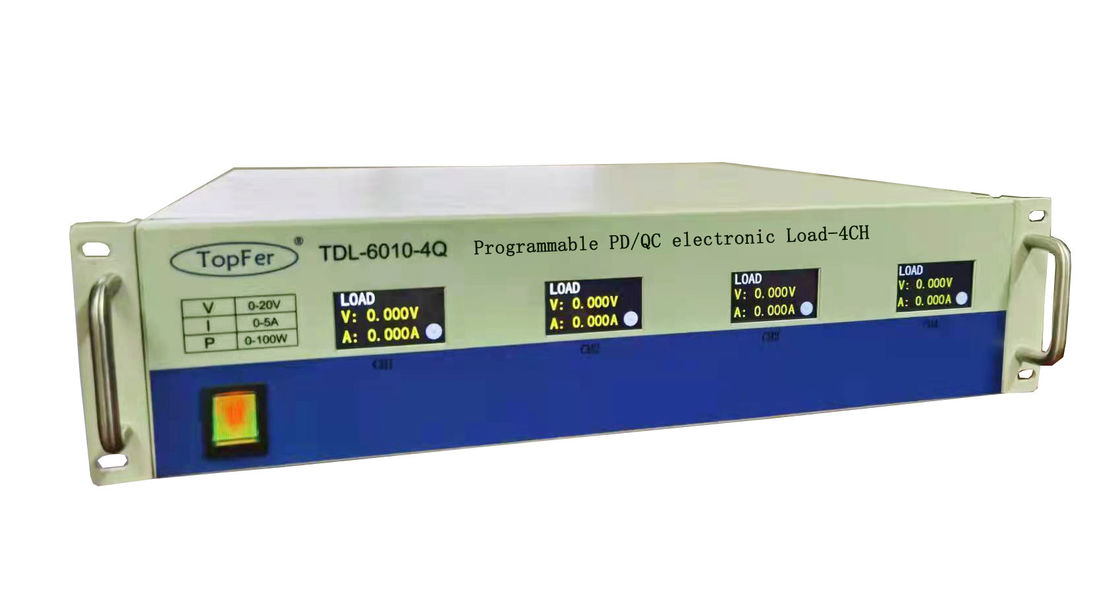 TDL-6010-4Q Программируемая PD/QC электронная нагрузка - 4CH и поддерживает протоколы QC, PD. Он может быстро переключаться между стандартным, протоколом QC и протоколом PD, с четырьмя независимыми интерфейсами нагрузки.